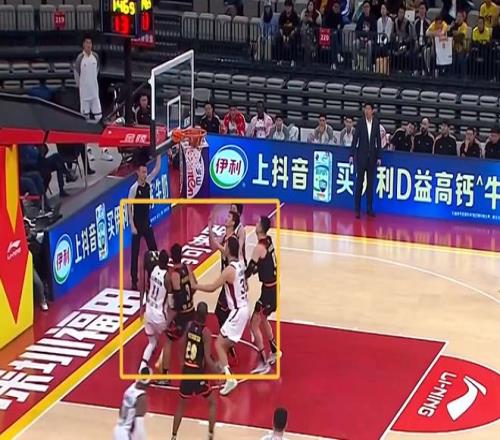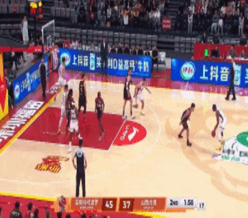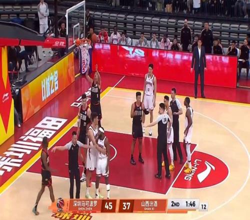 比赛打到1分46秒,山西外援迪亚洛持球进攻,在突破甩开贺希宁后迪亚洛顶着深圳外援史密斯的防守打进并造成了史密斯的犯规。